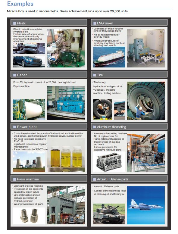 - By extending the life of hydraulic and lubrication oil, the Miracle Boy system helps to reduce the environmental impact of industrial operations by minimizing the need for frequent oil changes and disposal.